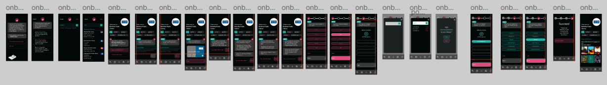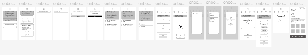 I used the steps outlined in my user flow to design my mid-fi wireframes. At this point in the design process, I would usually sketch out several ideas prior to mid-fi wireframing. However, because Libby’s existing UI already utilizes most of the elements I’d need to incorporate my onboarding feature, I was able to create mid-fi wireframes by rearranging these elements in a new context and populating them with relevant info for each screen.